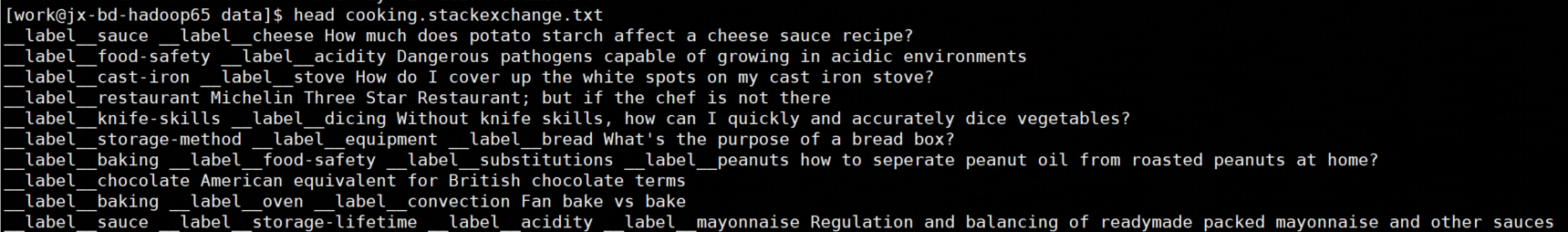 每一行文件都由标签和对应的语句组成,每个标签的前缀都是“__label__”,这是fastText约定俗称的区分标签和语句的符号。