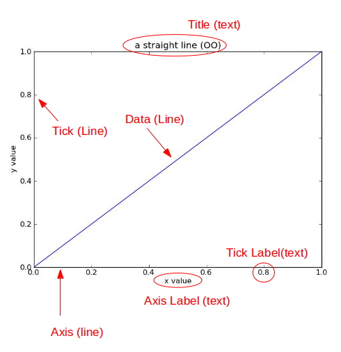Title为标题。Axis为坐标轴,Label为坐标轴标注。Tick为刻度线,Tick Label为刻度注释。各个对象之间有下面的对象隶属关系: