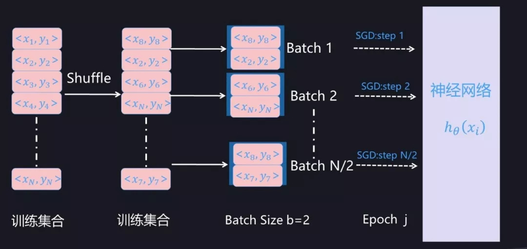 图 1. Mini-Batch SGD 训练过程(假设 Batch Size=2)