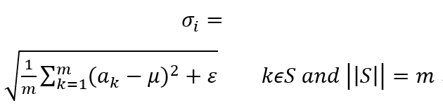 σ_i 为根据均值和集合 S 中神经元各自激活值求出的激活值标准差: