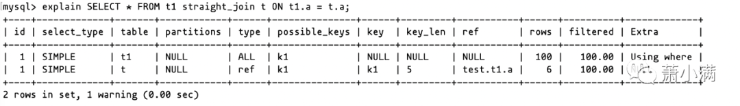 SELECT * FROM t1 straight_join t ON t1.a = t.a;