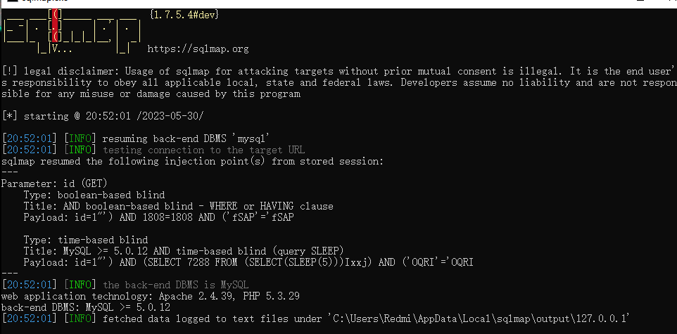 python sqlmap.py -u "http://127.0.0.1/sqli-labs-master/Less-7/?id=1""