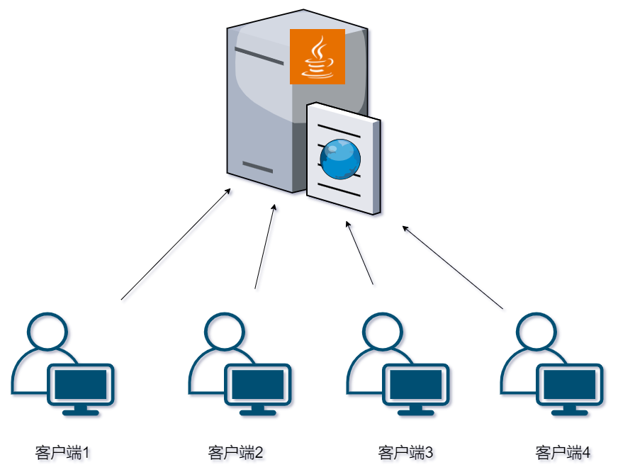 好在,95年之后,有一个叫做互联网的新玩意儿开始普及,它将计算机与计算机连成整体,通过网页的方式对人们提供服务。而互联网的一个特点是服务器——客户端形态的,就是下图的样子。客户端请求服务器,服务器发送文字、图片、文件给客户端展示。