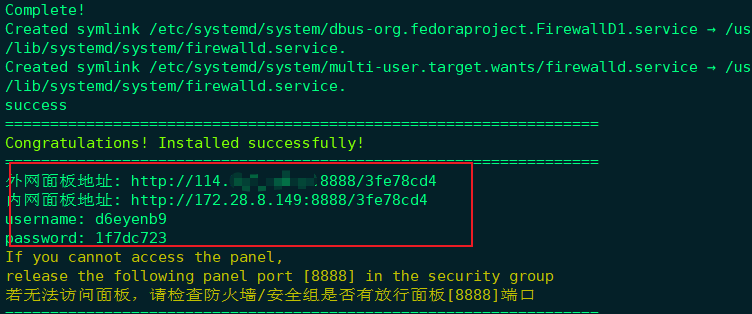 安装之后会给你网址,以及登录密码