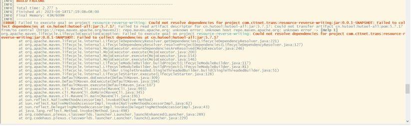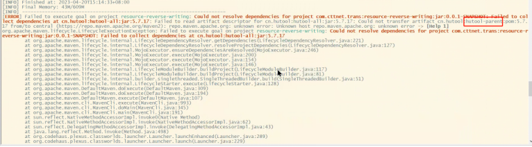 - 在内蒙反写项目中,因为是新部署的项目,有些jar包现场并没有,在发包运行后,产生异常,显示cn.hutool:hutool-ali:jar:5.7.21 的库无法被解析和下载
