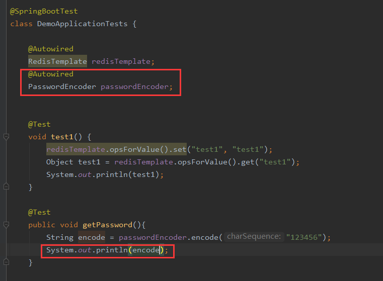 五、写个单元测试,拿一下用BCryptPasswordEncoder产生的加密密码,放入数据库,