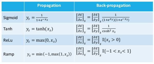 Leon Bottou列出了一些有用的表格,关于激活函数,损失函数,和它们相应的导函数。我将它们先放在这里以便后续使用。