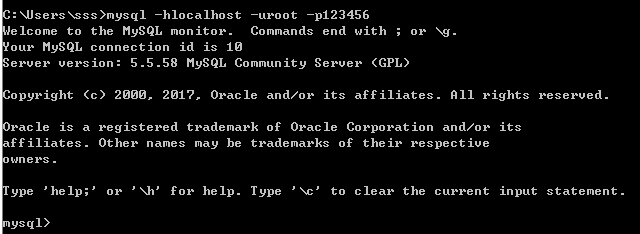 在命令行敲 mysql -hlocalhost -uroot p123456(h:本地IP u:账号 p:密码 之前安装时候设置的密码)