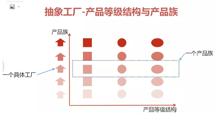 AbstractFactory:抽象工厂角色,如CourseFactory类,它声明了一组用于创建一种产品的方法,每一个方法对应一种产品,如创建视频和创建手记。