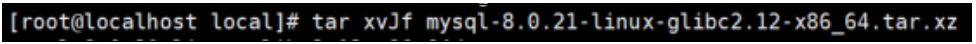 3.解压mysql tar -xvf mysql-8.0.21-linux-glibc2.12-x86_64.tar.xz