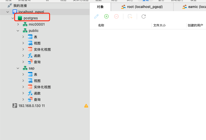 标题 eamic 是数据库名,对应下图的postgres, public,mic00001,是模式名称