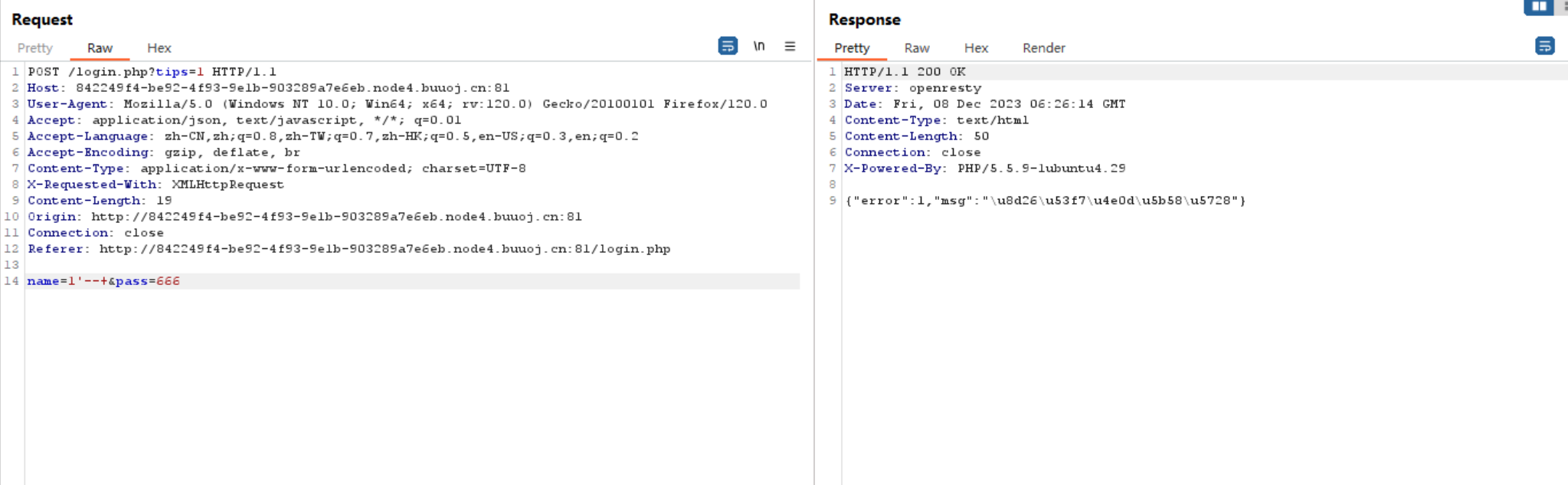如果觉得太难了,可以在url后加入?tips=1 开启mysql错误提示,使用burp发包就可以看到啦