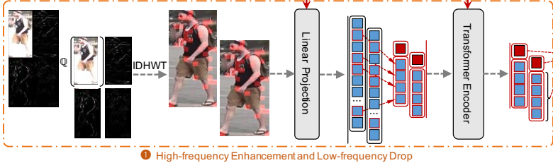 现如今发现在ViT(属于transformer)中加入传统的CNN可以提升模型的性能, 针对传统Re-ID,研究者通过对数据集图片的高频和低频部分进行提取分别做Re-ID 发现,transformer在低频做Re-ID性能比传统的CNN网络效果好, 但是在高频部分, transformer却比CNN的效果差。
