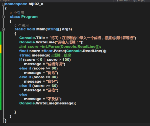 Console.Title = "练习:在控制台中录入一个成绩,根据成绩计算等级";