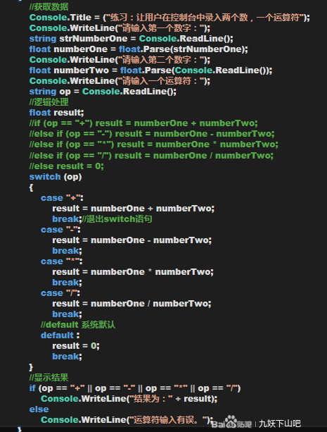 Console.Title = ("练习:让用户在控制台中录入两个数,一个运算符");