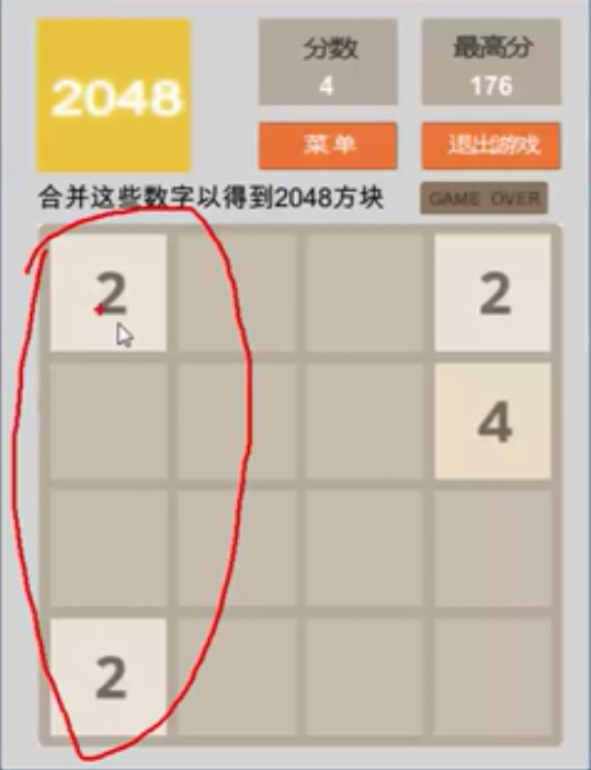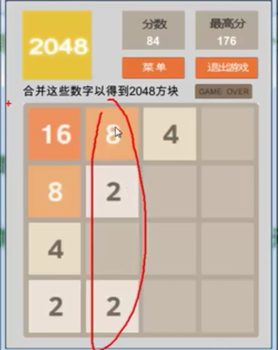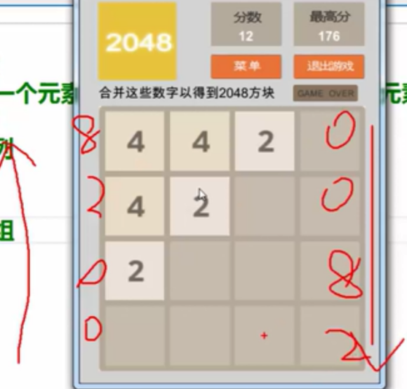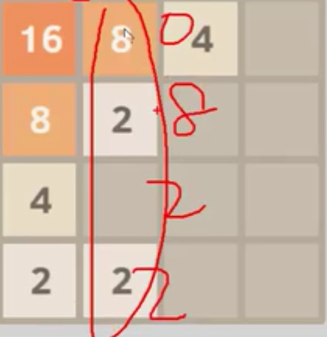 2 2 2 0 --》合并清零后变成 4 0 2 0 但是这个结果也不是我们想要的结果,我们想要的是-->4 2 0 0
