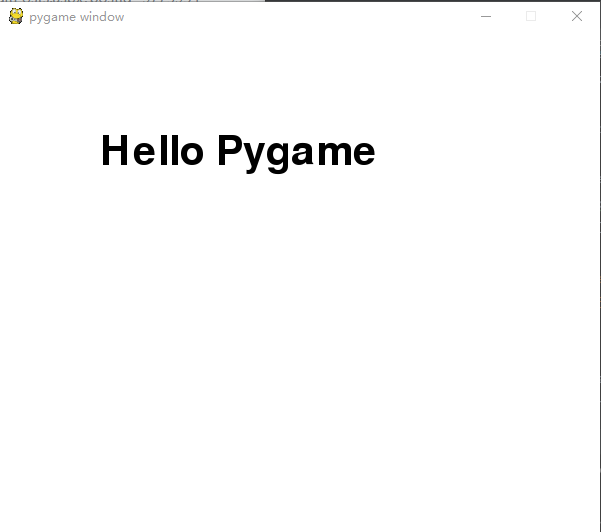 1 import pygame, sys 2 from pygame.locals import * 3 4 white = 255,255,255 5 black = 0,0,0 6 7 pygame.init() 8 9 screen = pygame.display.set_mode((600, 500)) 10 myfront = pygame.font.Font(None,60) 11 textImage = myfront.render("Hello Pygame", True, black) 12 13 while True: 14 for event in pygame.event.get(): 15 if event.type in (QUIT, KEYDOWN): 16 sys.exit() 17 screen.fill(white) 18 screen.blit(textImage, (100, 100)) 19 pygame.display.update()
