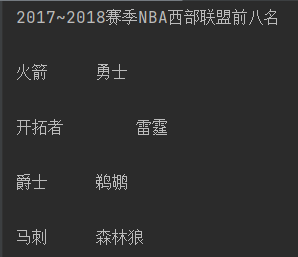 2.分两列显示2017~2018赛季NBA西部联盟前八名的球队