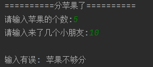 print("\n出错了~_~--苹果不能被0个小朋友分")