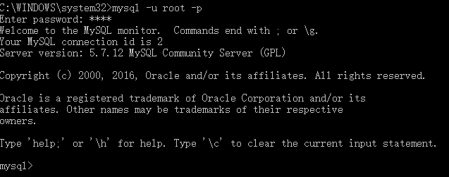 4、再开一个DOS窗口(因为刚才那个DOS窗口已经不能动了),输入mysql回车,如果成功,将出现MySQL提示符 >。