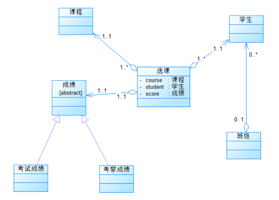 要求:修改类结构,将成绩类的继承关系改为组合关系,成绩信息由课程成绩类和分项成绩类组成,课程成绩类组合分项成绩类,分项成绩类由成绩分值和权重两个属性构成。