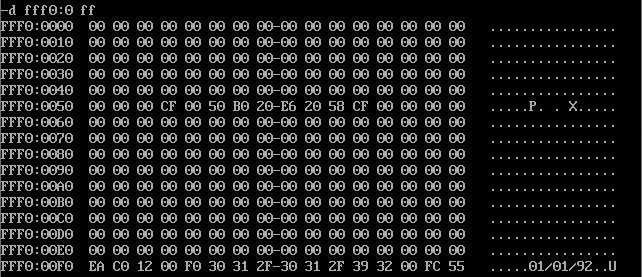 在debug中,使用d命令查看生产日期