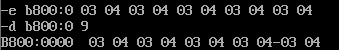 在debug中,使用e命令,向内存单元填写数据。