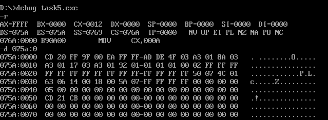 给出在debug中查看task5.exe的程序段前缀PSP的截图。