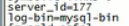 mysql配置文件my.cnf中添加serveri_id,开启binlog,重启