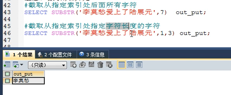 1.5 instr:返回字符串第一次出现的索引,如果找不到返回0。