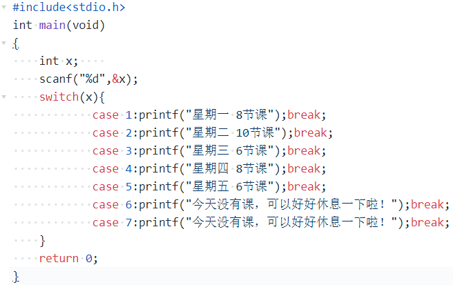 | 1 | 星期一 8节课 | 根据swich语句内设置得出的结果 |