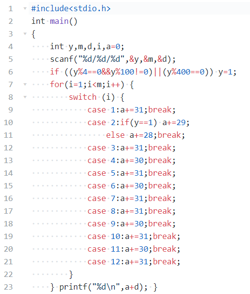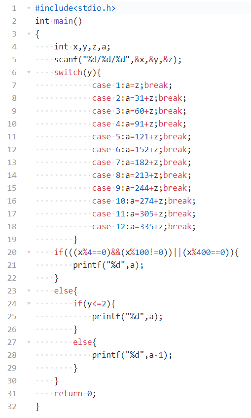 本题要求编写程序计算某年某月某日是该年中的第几天。