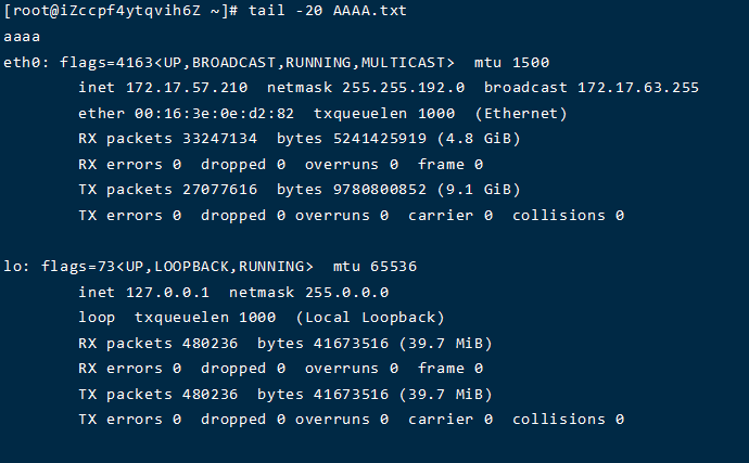 作用1:查看一个文件的未n行,如果n不指定默认显示后10行