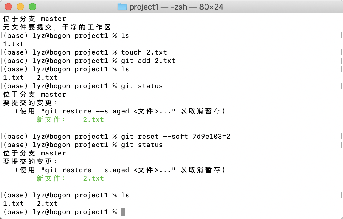 3.soft模式,保留工作区和暂存区内容,将仓库内容改成和reset节点一致。
