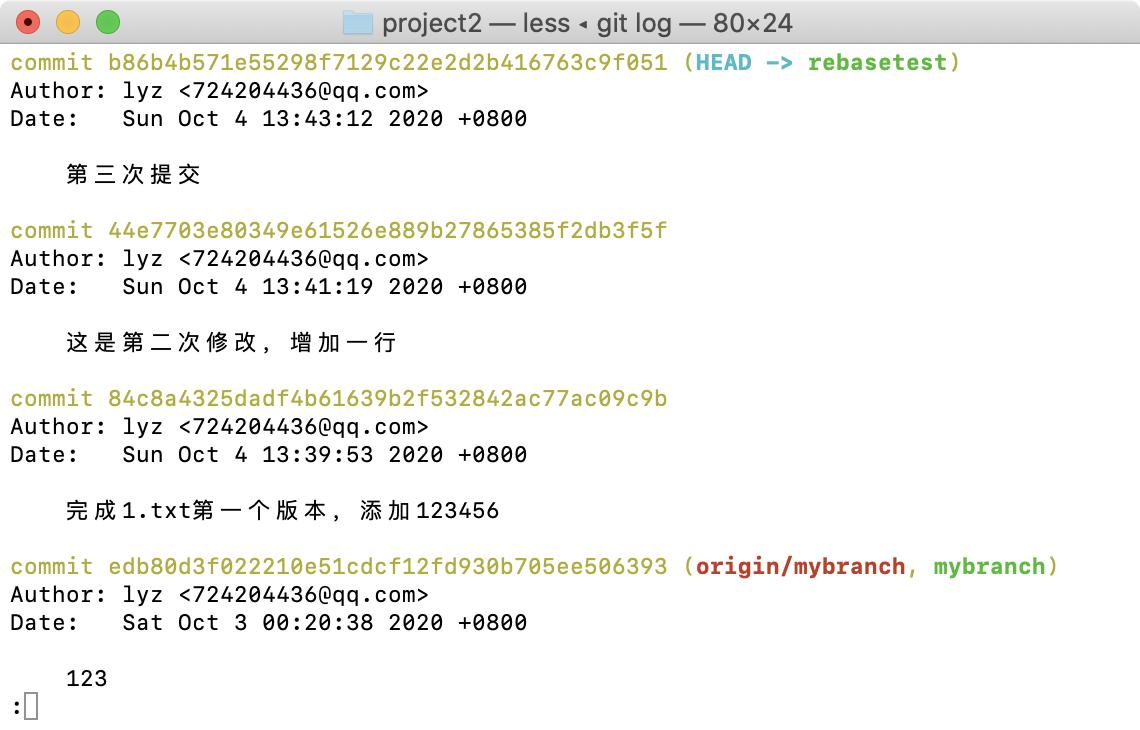 至此,rebase操作就完成了,在团队项目开发中最后就需要将分支merge一下再push到github上就可以了。