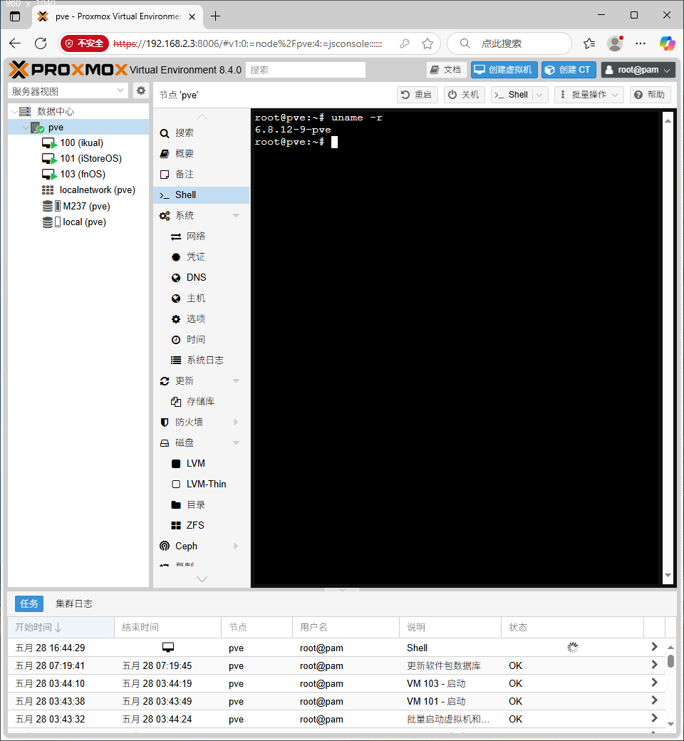 安装后登陆地址(登录电脑需要在同网段):https://192.168.2.3:8006