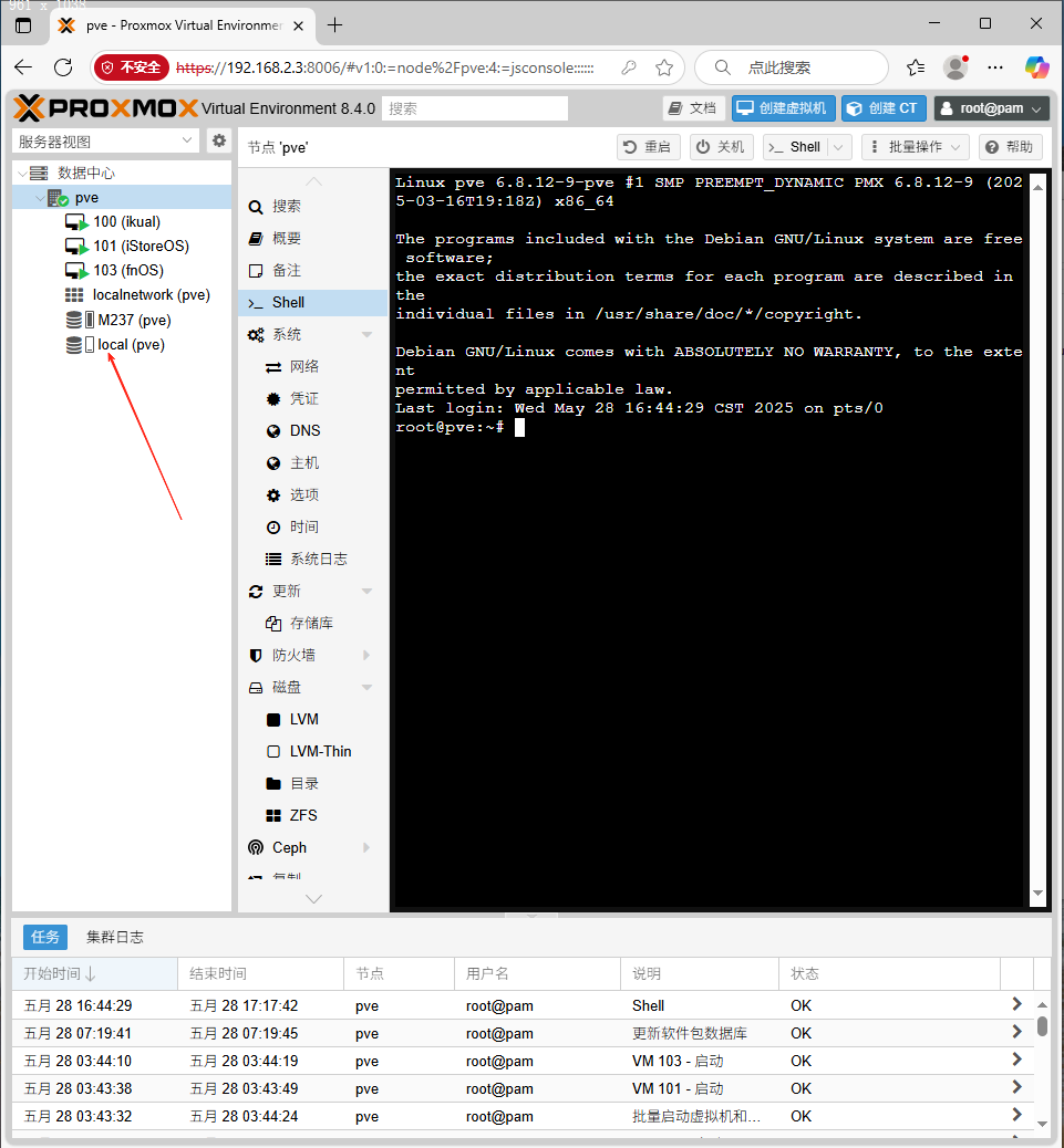 这里的local就是指安装pve的时候选择的磁盘。