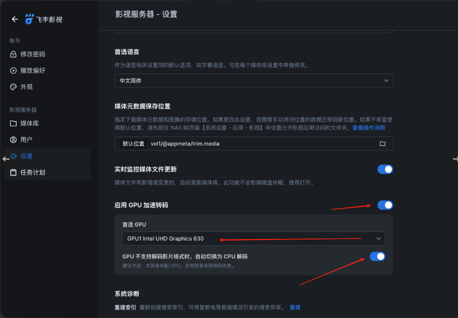 update-initramfs -u -k all - 重启飞牛后重新打开影视就能开启GPU进行硬件解码了。