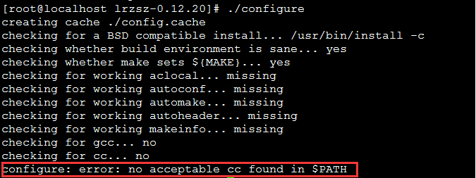 输入命令后,报错,证明虚拟机中缺少gcc,首先安装gcc:yum install gcc(换成这个yum install gcc gcc-c++ gcc-g77),再进行./configure就成功了。