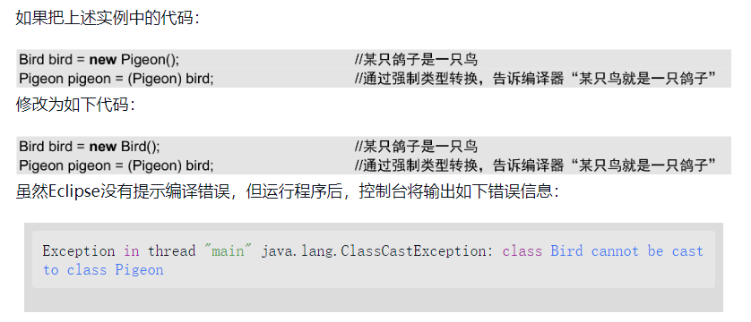2.如果将一个较抽象的类的对象转换为一个较具体的类的对象,这样转型通常会出现错误。