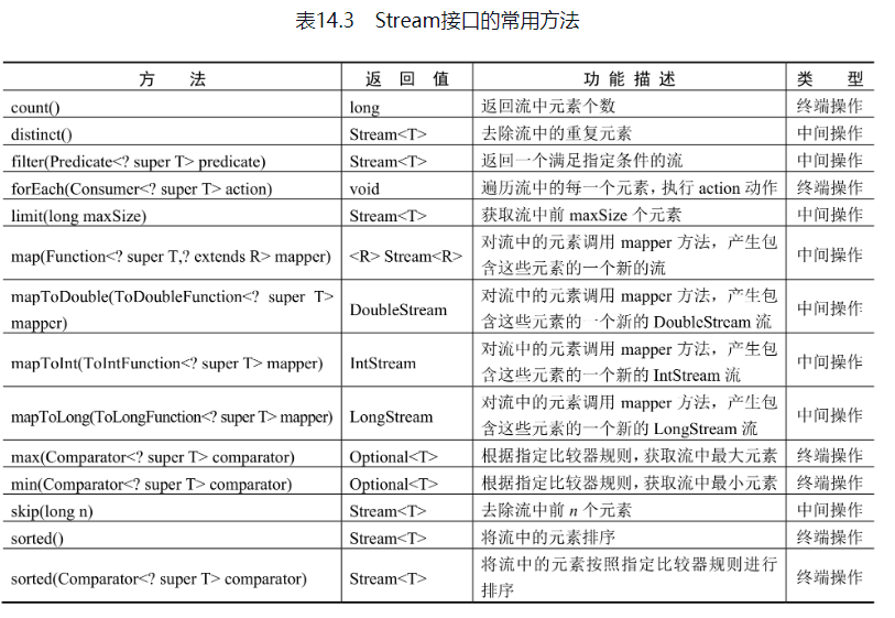 Stream接口的常用方法如表14.3所示。