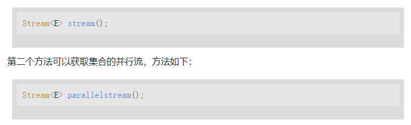 Collection接口新增两个可以获取流对象的方法。第一个方法最常用,可以获取集合的顺序流,方法如下:
