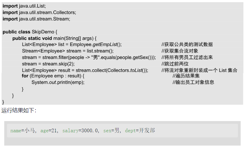 skip()方法是Stream接口提供的方法,该方法可以忽略流中的前N个元素。