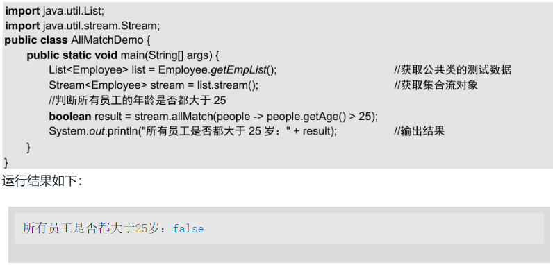 1.allMatch()方法allMatch()方法是Stream接口提供的方法,该方法会判断流中的元素是否全部符合某一条件,返回结果是boolean值。如果所有元素都符合条件则返回true,否则返回false。