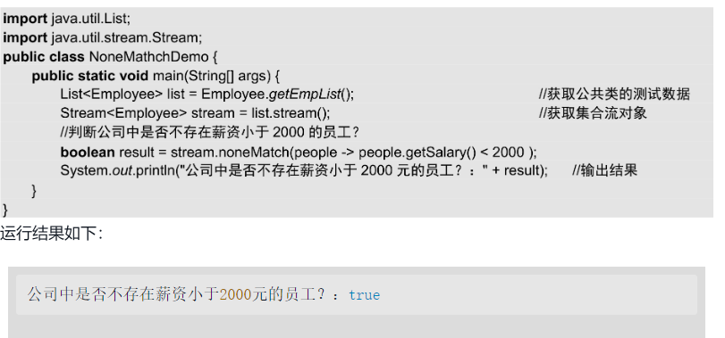 noneMatch()方法是Stream接口提供的方法,该方法会判断流中的所有元素是否都不符合某一条件。这个方法的逻辑和allMatch()方法正好相反。