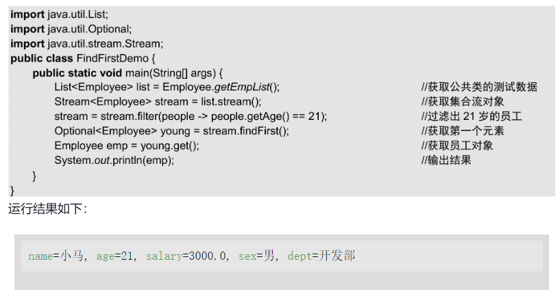 findFirst()方法是Stream接口提供的方法,这个方法会返回符合条件的第一个元素。