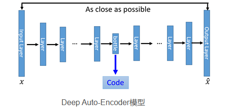 现在我们需要对这一雏形进行改进。首先一个最明显能改进的地方就是用神经网络代替\(W\)变换和\(W^T\)变换,就得到了如下Deep Auto Encoder 模型:
