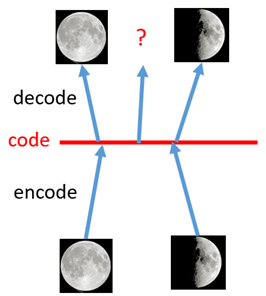 如上图所示,假设有两张训练图片,一张是全月图,一张是半月图,经过训练我们的自编码器模型已经能无损地还原这两张图片。接下来,我们在code空间上,两张图片的碧娜骂起点中间处取一点,然后将这一点交给解码器,我们希望新的生成图片是一张清晰的图片(类似3/4全月的样子)。但是,实际的结果是,生成图片是模糊且无法辨认的乱码图。一个比较合理的解释是,因为编码和解码的过程使用了深度神经网络,这是一个非线性的变换过程,所以在code空间上点与点之间的迁移是非常没有规律的。