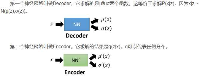 从宏观角度来看,调节\(P(x|z)\)就是调节NN Decoder,调节\(q(z|x)\)就是调节NN Encoder,于是VAE模型的算法就是:decoder每改进一次,encoder就调节成跟其一致,并且利用约束项迫使decoder在训练的时候“只能前进,不能后退”。