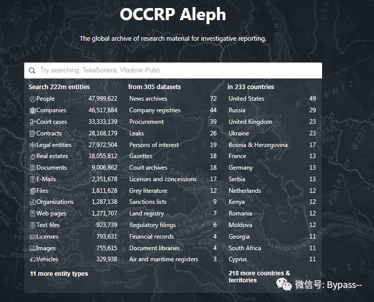 用于研究报告的研究材料的全球档案馆,通过搜索名字、手机号码、邮箱等查找公共记录和泄露情况。